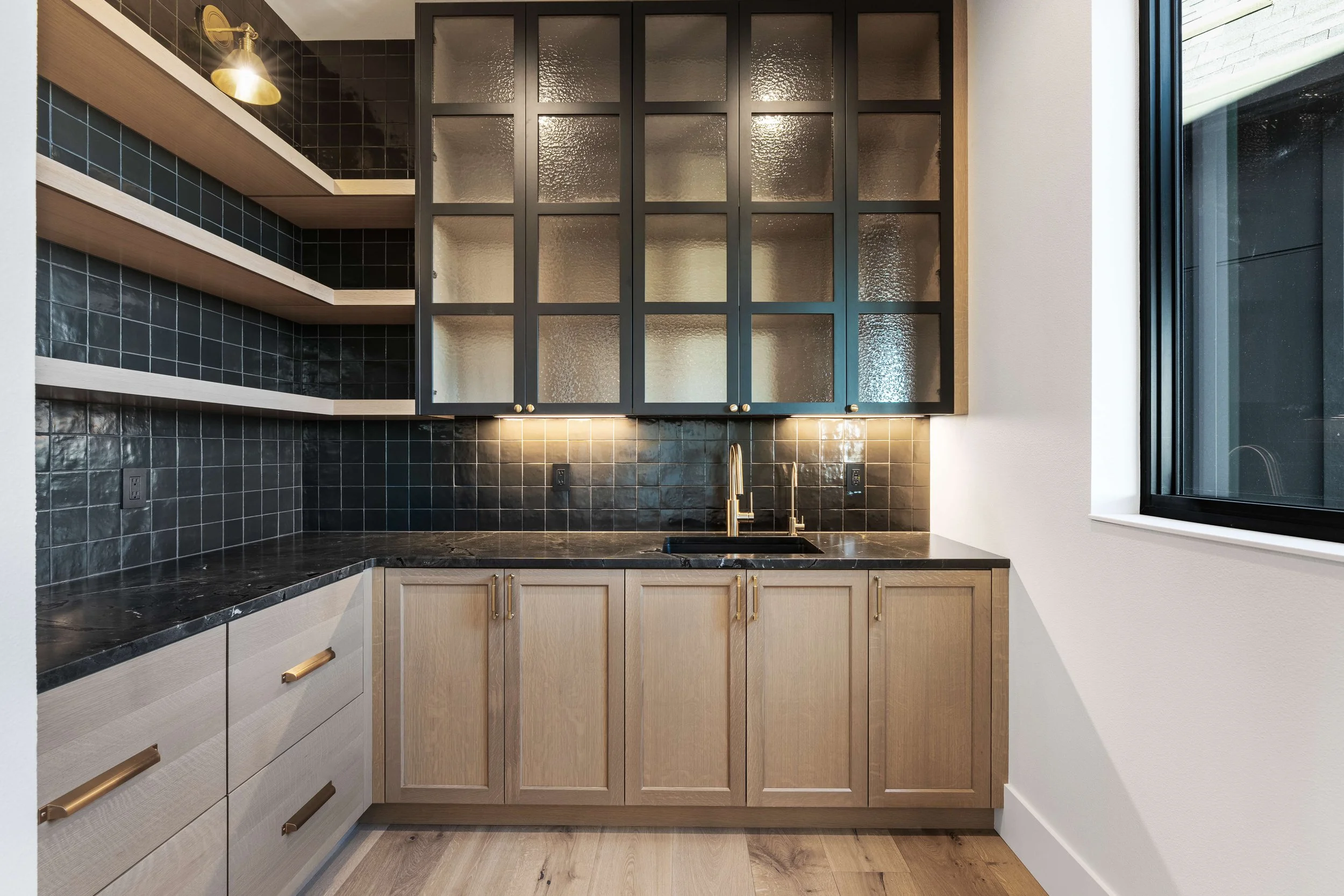 Two-tone cabinets have been increasing in popularity in recent years, and we expect to see a lot more of this interior design trend in 2025. Some designers blend natural wood finishes with painted cabinets, like the butler's pantry shown above, while others use two contrasting paint colors to change the feel of the kitchen space. This design choice adds depth and interest to the kitchen, and can make a kitchen feel more modern and inviting. It also allows for creativity in matching other elements, like countertops and backsplashes.